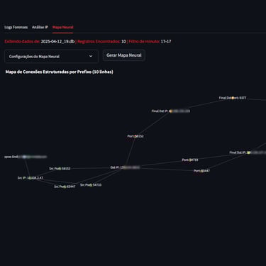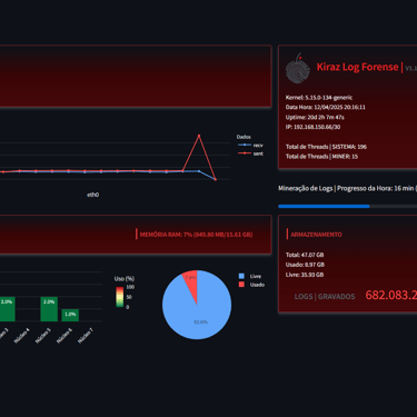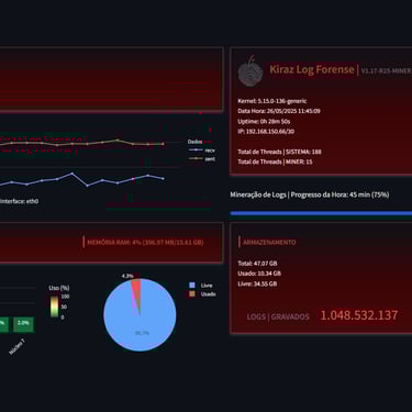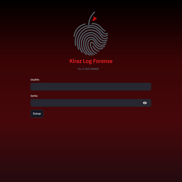 Explore imagens reais da interface, arquitetura e operação do Kiraz Log Forense.